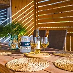 Гости могут воспользоваться как электрочайником, духовкой и стеклянной посудой на оснащённой всем необходимым кухне, так и отдельным туалетом и душем.